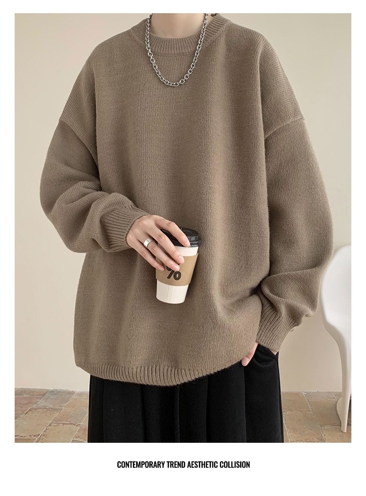 Korean Version New Round Neck Sweater Autumn Winter Men