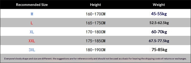 Size: M, L, XL, XXL, XXXL